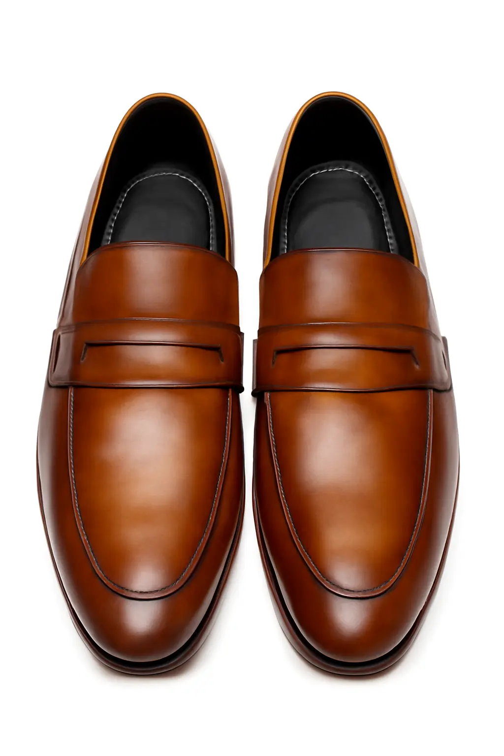 Classic Brown Leather Loafers with Elegant Strap Detail