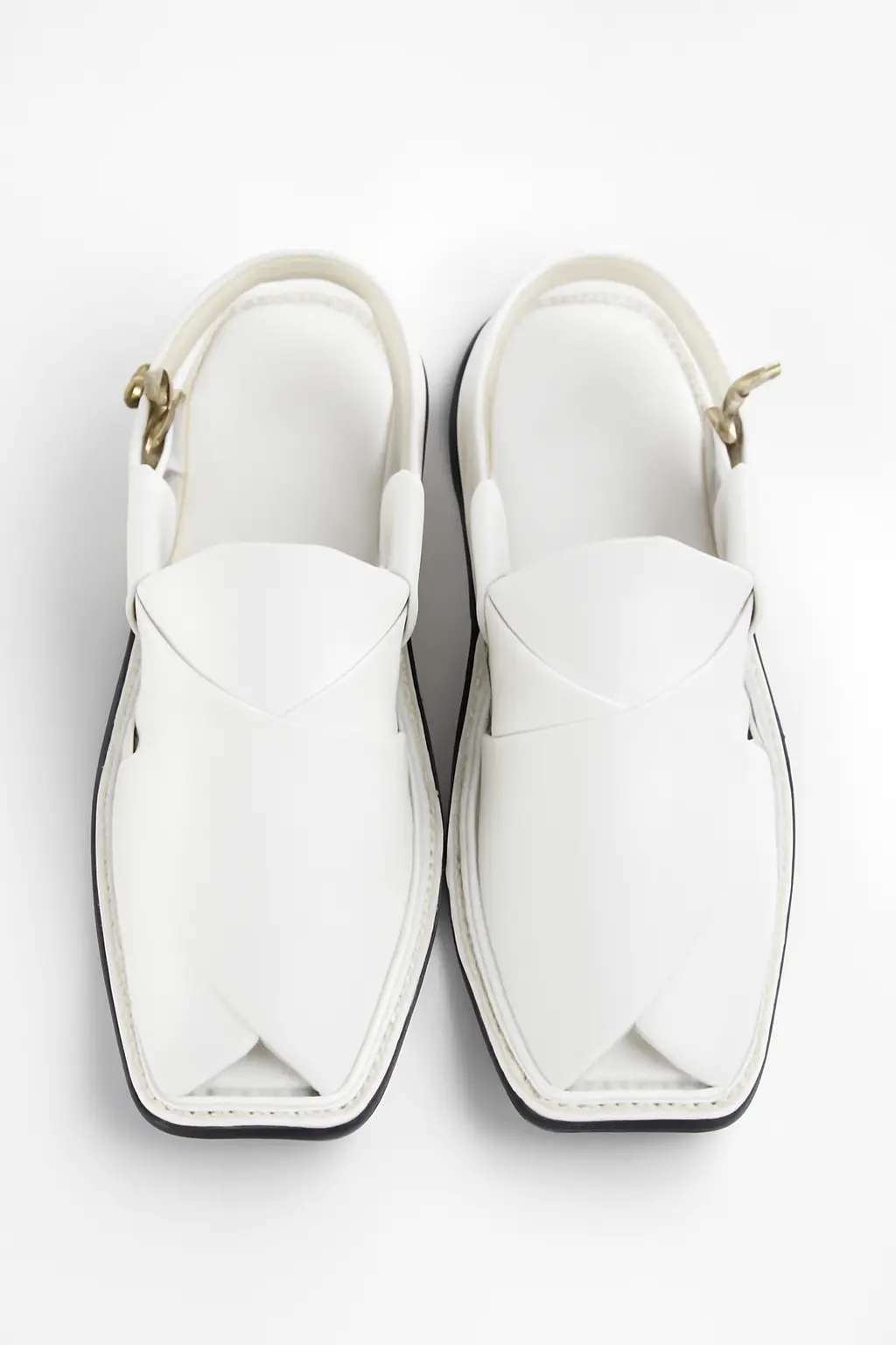 “Sleek White Leather Sandals with Elegant Cross-Front Design”